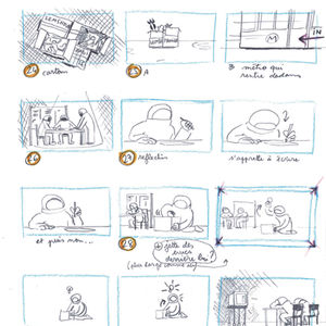 Par rapport à notre équipe très réduite et pour aller au plus vite durant la production, nous avions décidé d'utiliser les mises en pages qui suivent comme forme finale de board, ainsi que les animatiques comme ci dessus pour les séquences plus complexes. Cela m'a permis d'essayer d'aller au plus efficace visuellement.